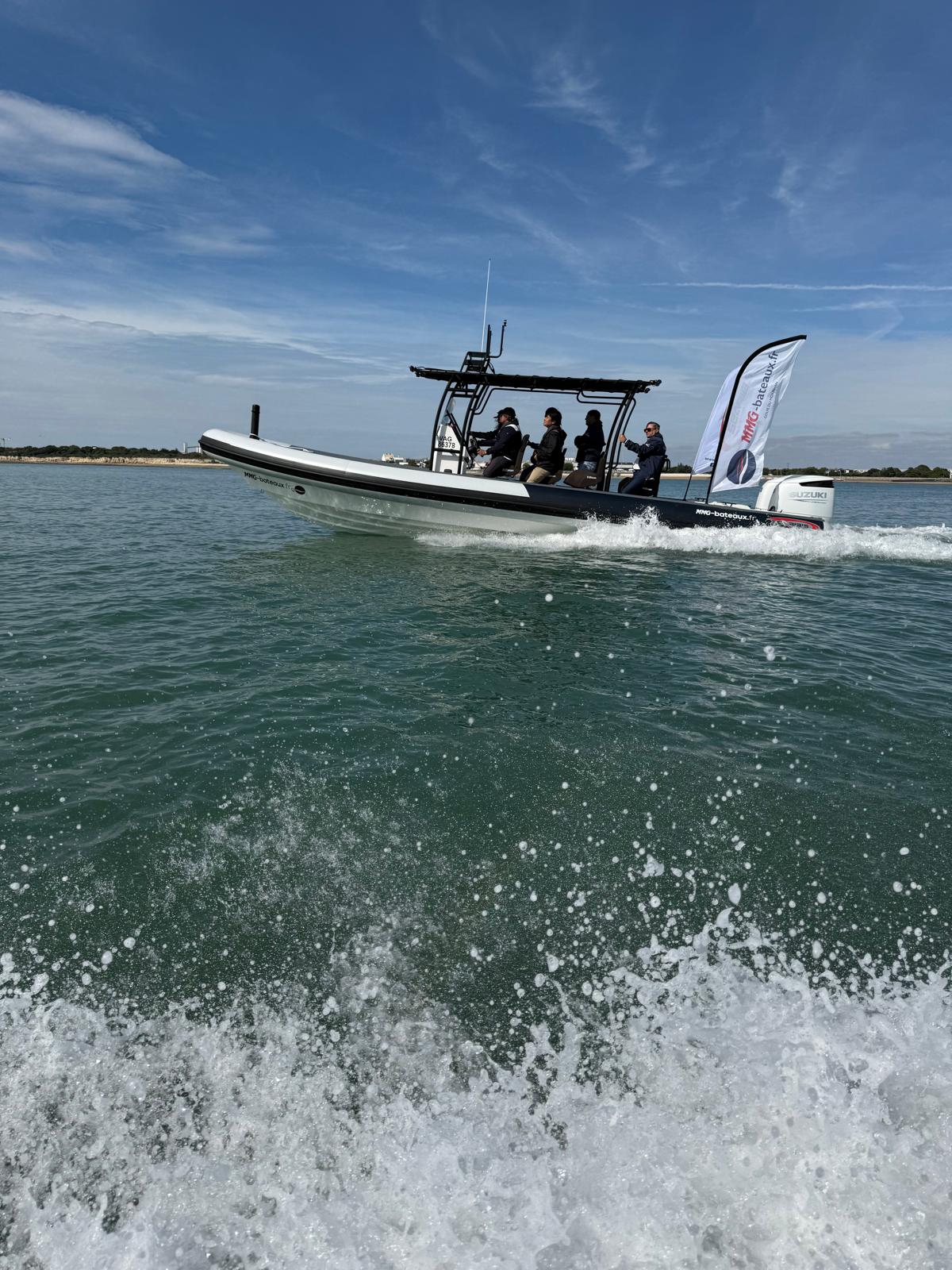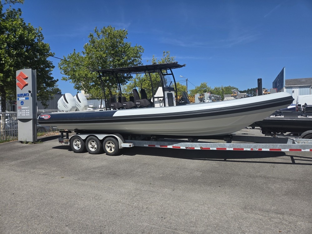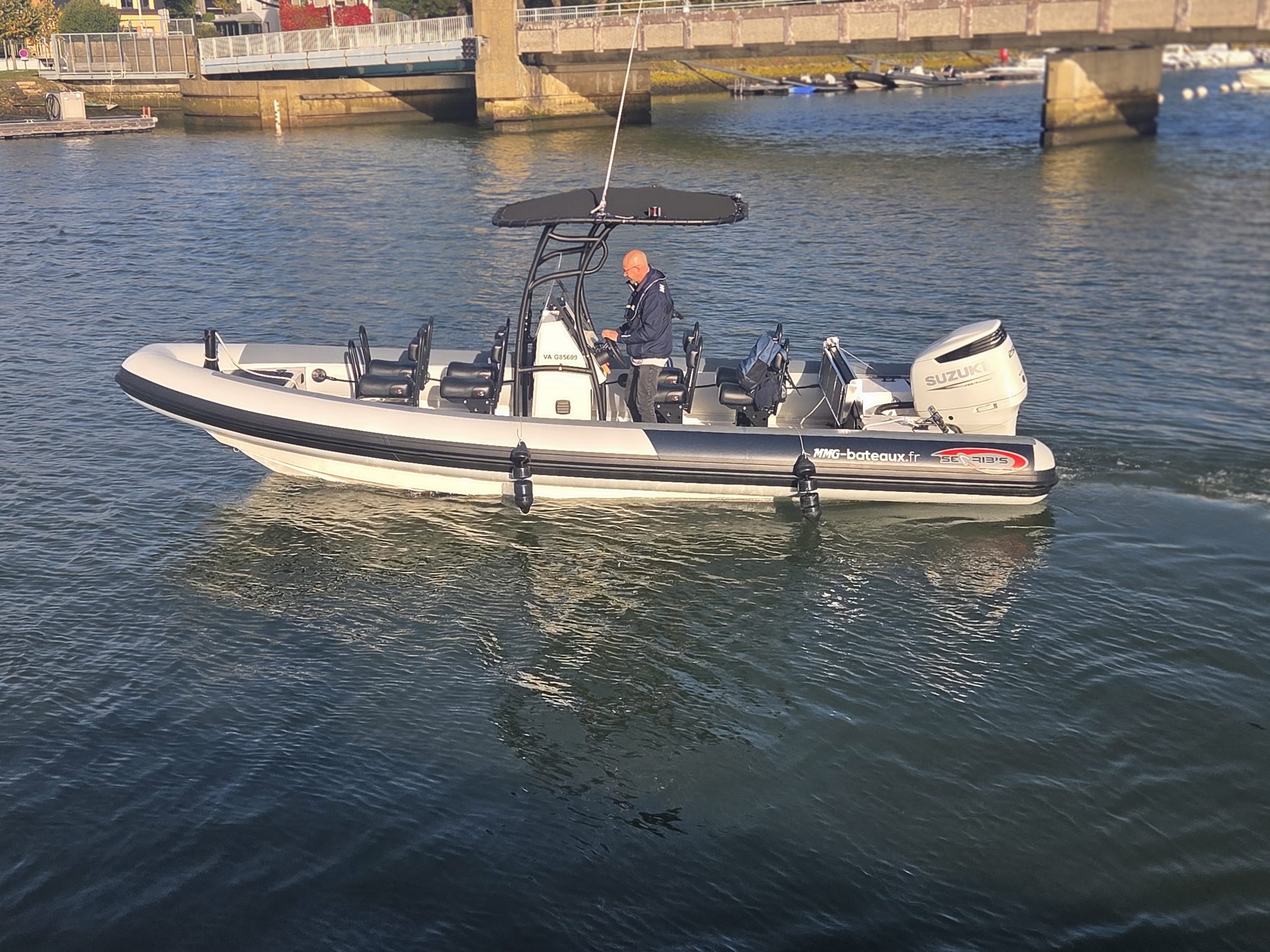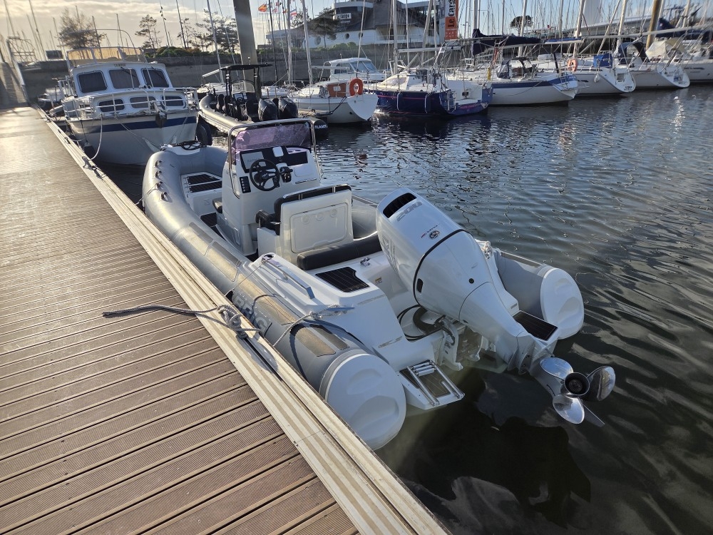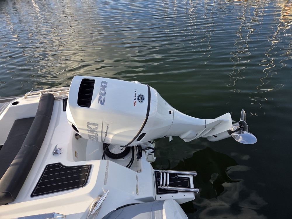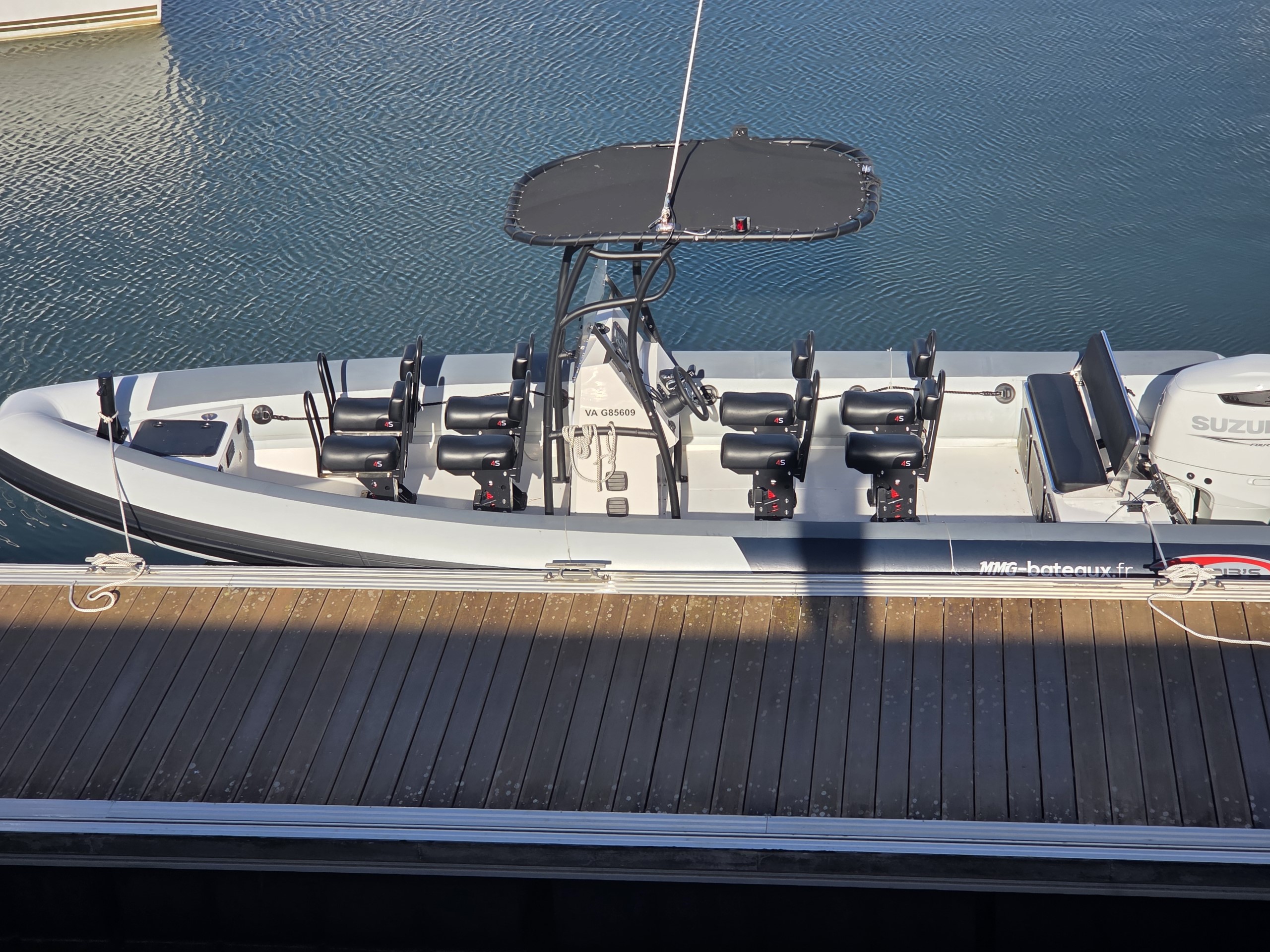 Il dispose d’une carène en V profond assurant une navigation fluide et sécurisée, même en mer formée, ainsi qu’une excellente stabilité à l’arrêt comme en navigation. Équipé d’un moteur Suzuki DF250 APXX, il peut atteindre une vitesse maximale de 42 nœuds. Ses flotteurs en Hypalon Néoprène 1670 Dtex garantissent une résistance et une durabilité optimales.