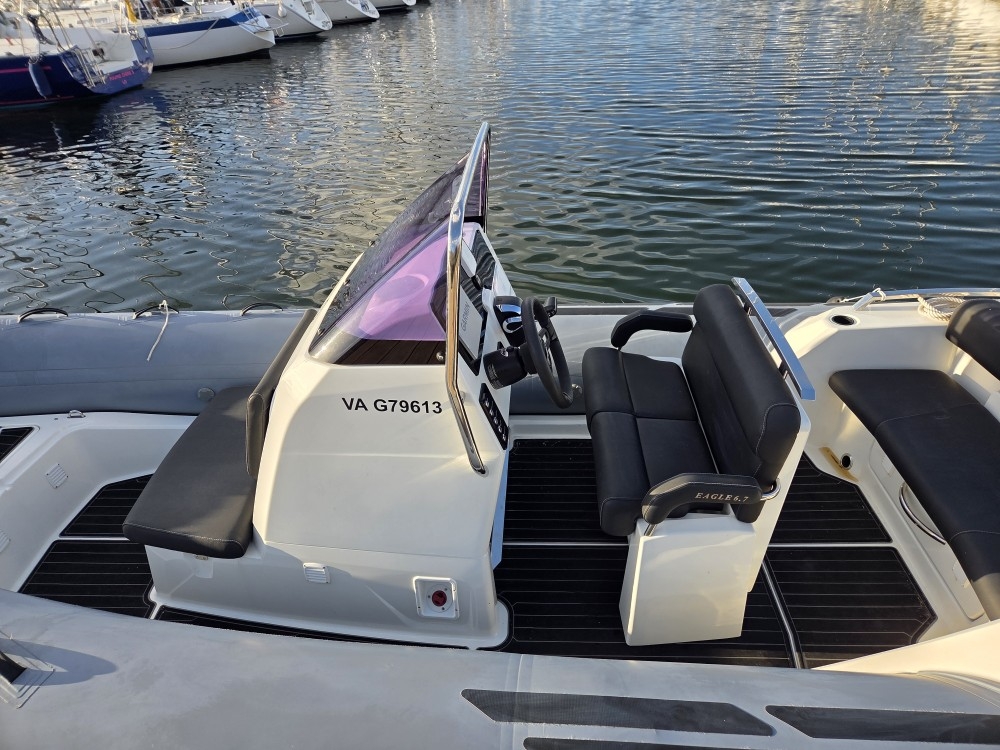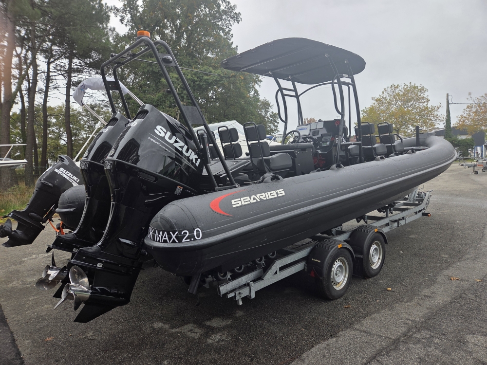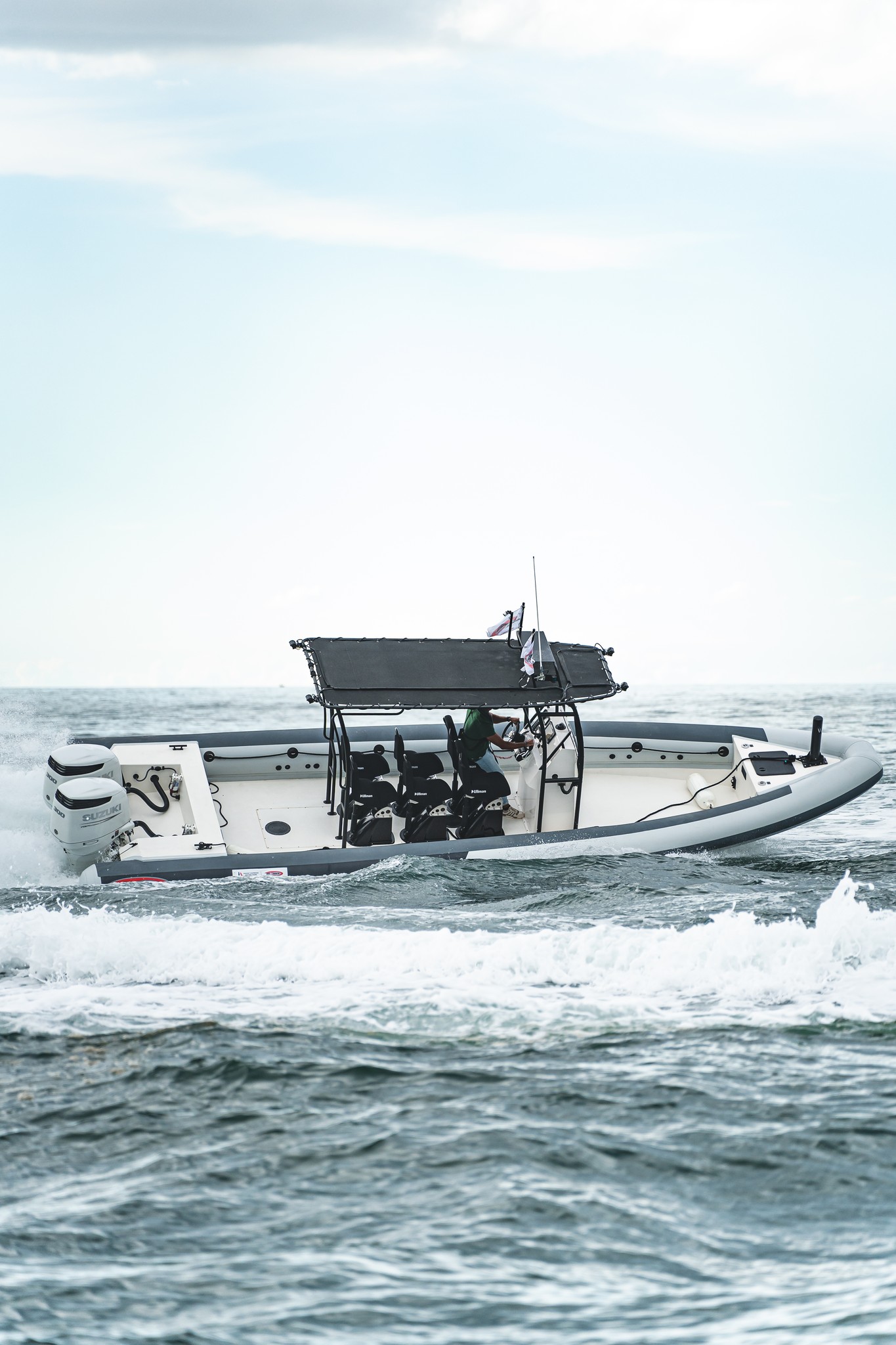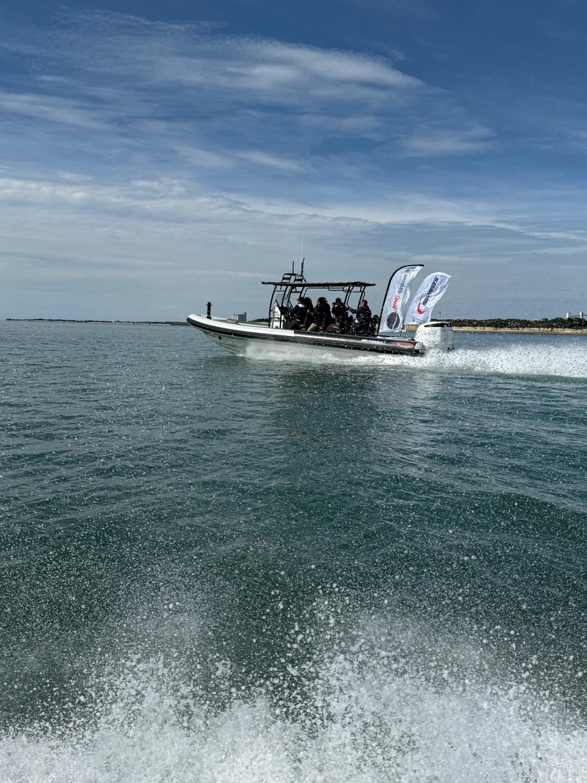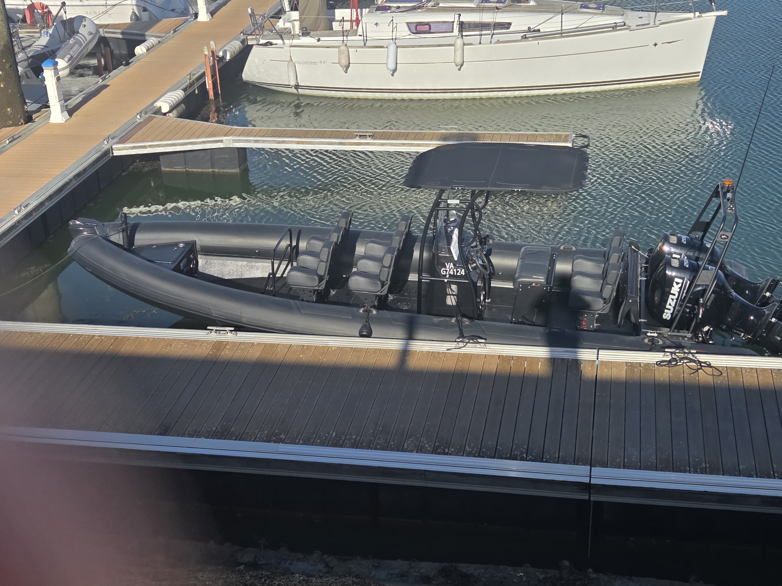 Il dispose d’une carène en V profond assurant une navigation fluide et sécurisée, même en mer formée, ainsi qu’une excellente stabilité à l’arrêt comme en navigation. Équipé d’un moteur Suzuki DF250 APXX, il peut atteindre une vitesse maximale de 42 nœuds. Ses flotteurs en Hypalon Néoprène 1670 Dtex garantissent une résistance et une durabilité optimales.