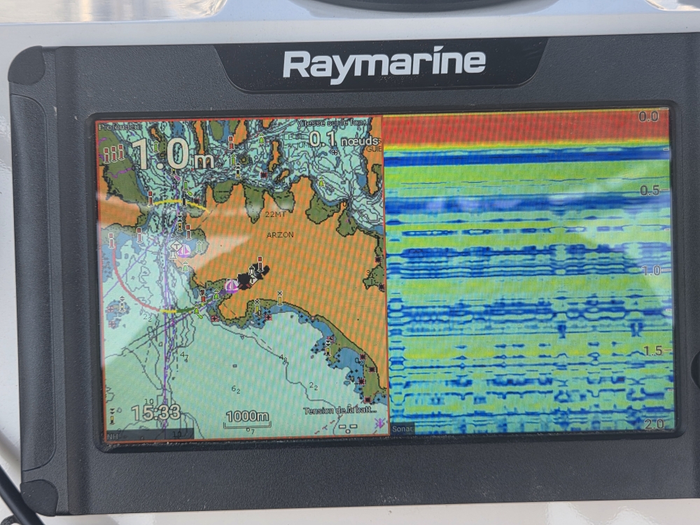 Électronique de pointe : Lecteur de cartes GPS sondeur Raymarine 9 pouces avec cartographie.