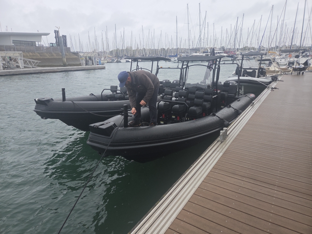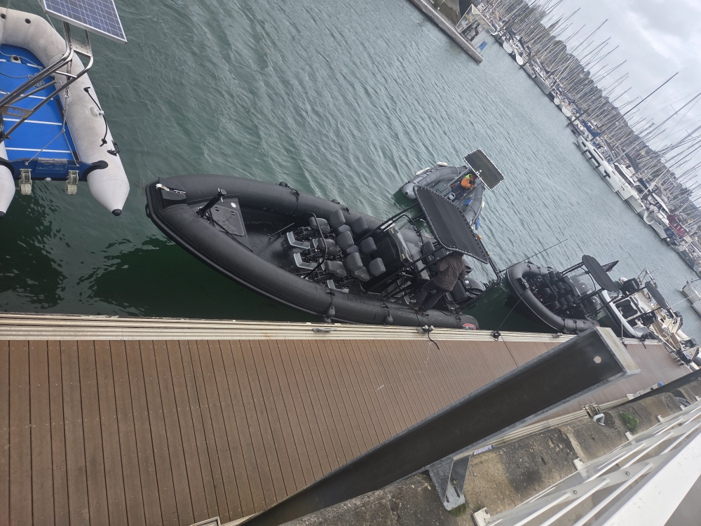 Structure Renforcée : Coque ultra-rigide et flotteurs en Hypalon Carbone pour une résistance maximale aux environnements industriels.