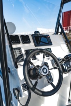 | Moteur : 20 cv Suzuki | Console de direction, volant et pare-brise |